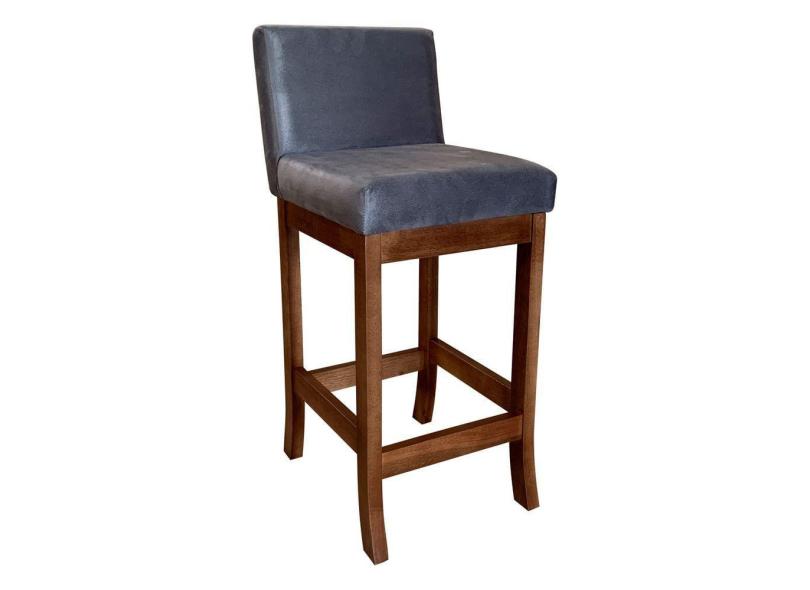 Banqueta Média Estofada com Encosto para Bancada 38 x 90 Cm Espanha Madeira Castanho Suede Cinza CCS