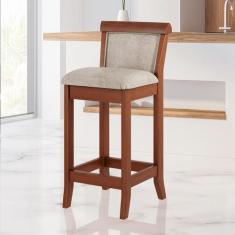 Banqueta Média Estofada Encosto Mônaco 36x90Cm Bancada Madeira Maciça