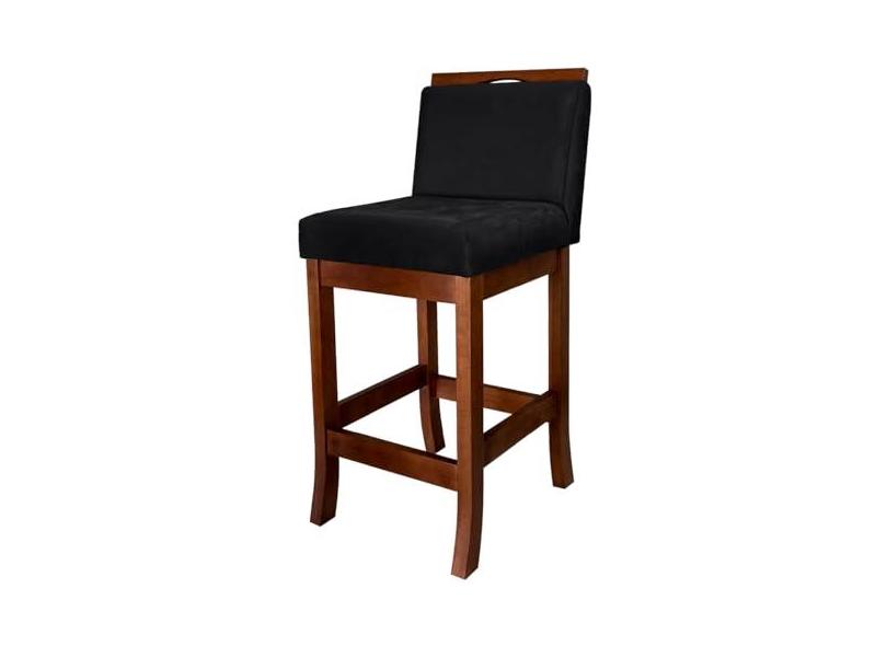 Banqueta Média Estofada para Bancada Turim Madeira Castanho Suede Preto CCS