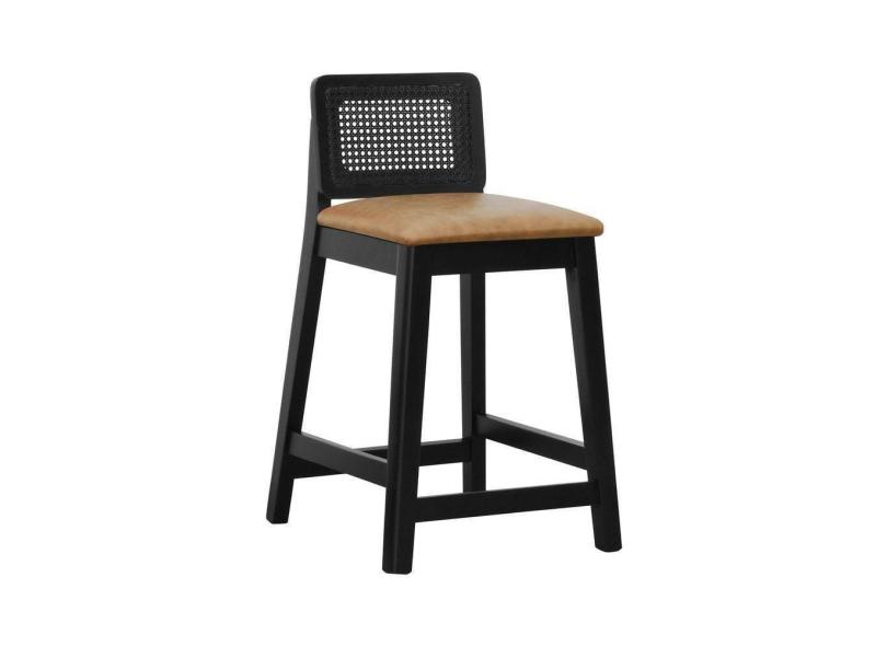 Banqueta Média Gabi Madeira Maciça Telinha - Preto Assento Estofado Corano Marrom Mescla