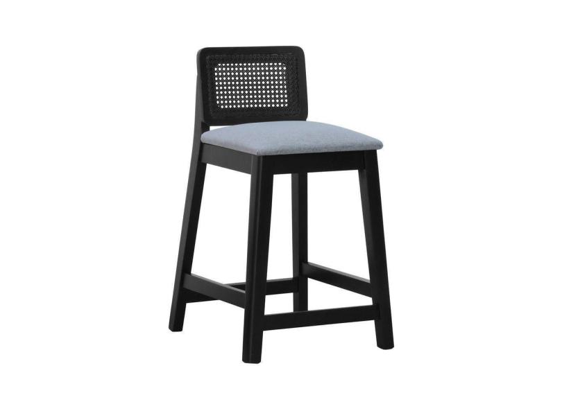 Banqueta Média Gabi Madeira Maciça Telinha - Preto Assento Estofado Linho Cinza Mescla Impermeável
