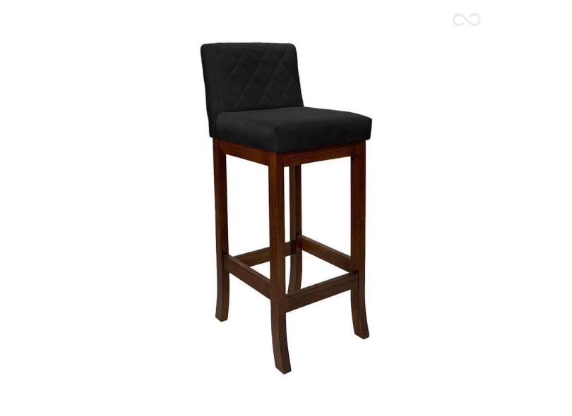 Banqueta Média para Balcão de Cozinha Tóquio Madeira Maciça Matelassê Suede Preto CCS