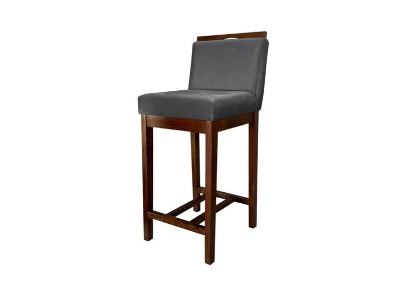 Banqueta Média para Bancada Gourmet Líbia Madeira Capuccino Suede Cinza CCS