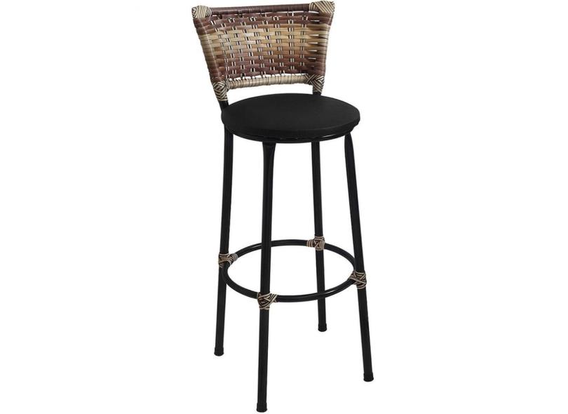 Banqueta Média Preta com Encosto Junco Capuccino Assento Preto