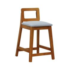 Banqueta Média River Madeira Maciça - Amêndoa Assento Estofado Linho Cinza Mescla Impermeável