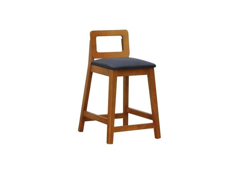 Banqueta Média River Madeira Maciça Assento Estofado Linho Amêndoa/Preto