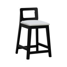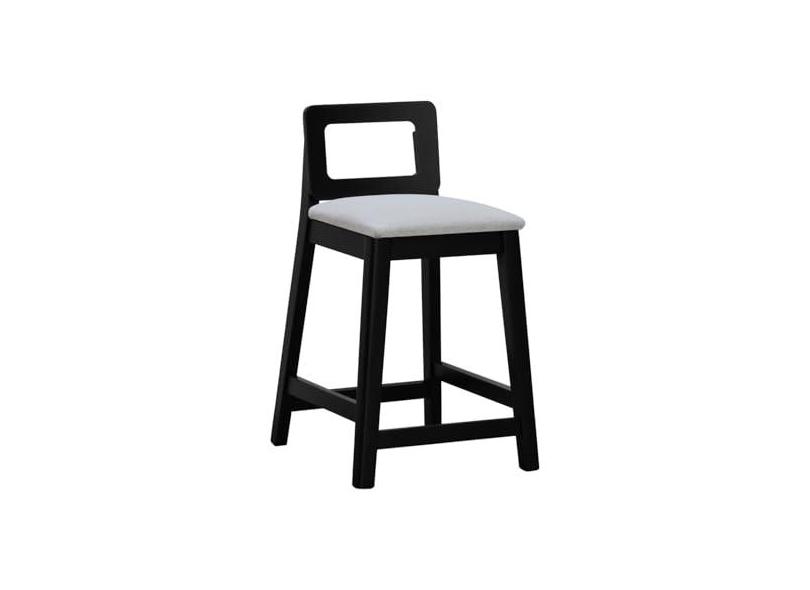 Banqueta Média River Madeira Maciça Assento Estofado Linho Preto/Bege