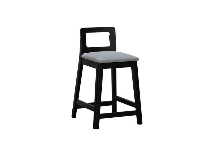 Banqueta Média River Madeira Maciça Assento Estofado Linho Preto/Cinza