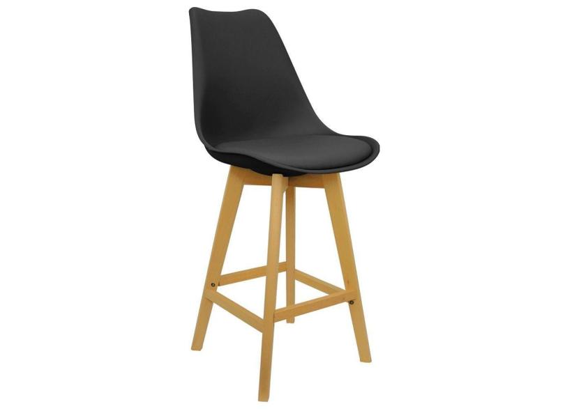 Banqueta Monty Leda Luisa Saarinen Alta Base Fixa Madeira - Preta