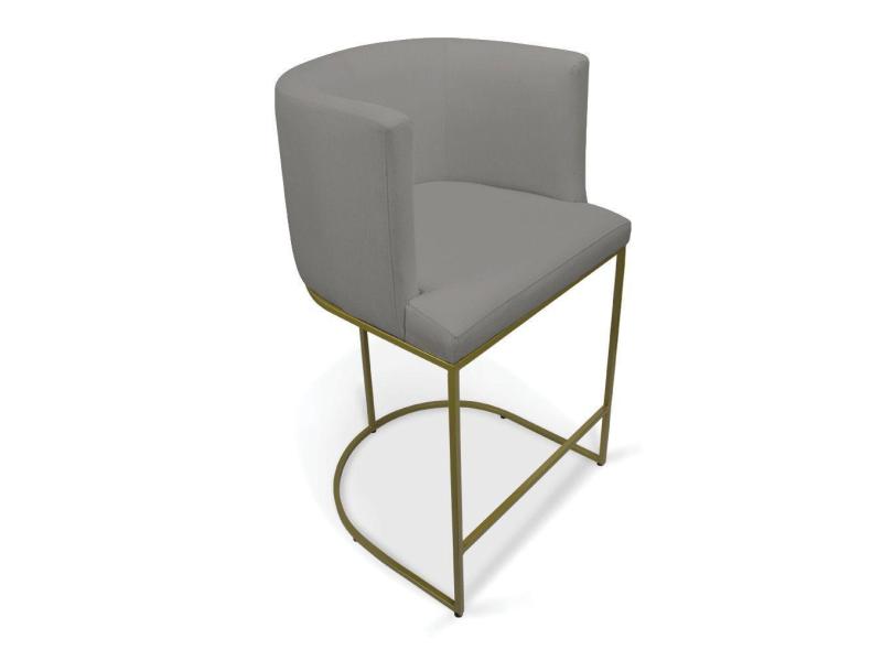 Banqueta Paola Linho Base Metálica Dourada - D'rossi Cor A26 Grafite
