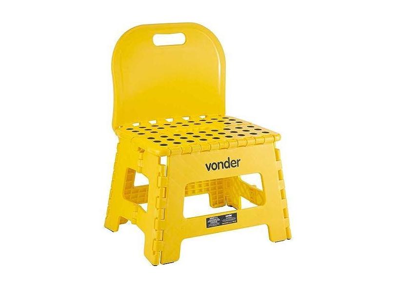 Banqueta Plástica Dobrável Amarela Altura 220 mm com Encosto Vonder
