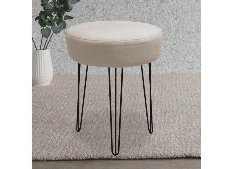 Banqueta Puff Jullia Luxo 55cm Industrial Ferro Preto Corino Bege - Ahazzo Móveis