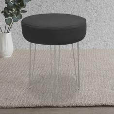 Banqueta Puff Jullia Luxo 55cm Industrial Ferro Preto Corino Cinza - Ahz Móveis