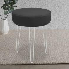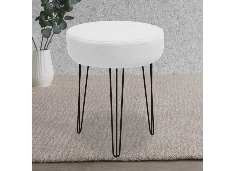 Banqueta Puff Jullia Luxo 55cm Industrial Ferro Preto Sintético Branco - Ahz Móveis