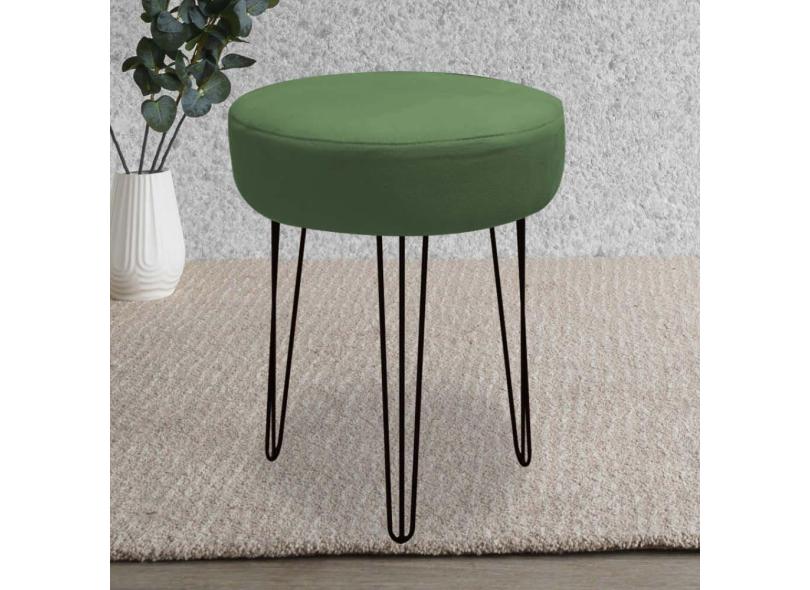 Banqueta Puff Jullia Luxo 55cm Industrial Ferro Preto Suede Verde Musgo - Ahazzo Móveis