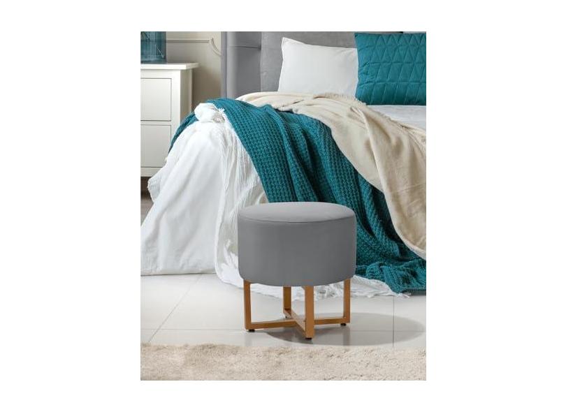 Banqueta Redonda Tecido Veludo Cinza Com Pes de Ferro Estilo Industrial Cobre