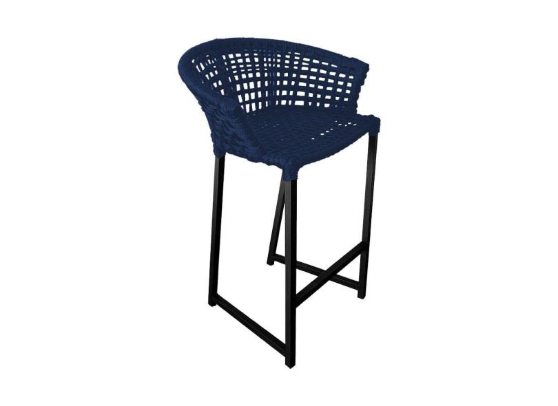 Banqueta Reis em Corda Náutica e Base em Alumínio Preta para Área Gourmet - Externa Azul Marinho