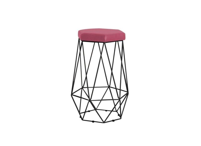 Banqueta Rubel Base Preta Suede Rosa Gran Belo