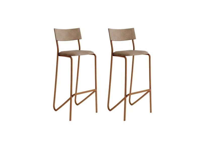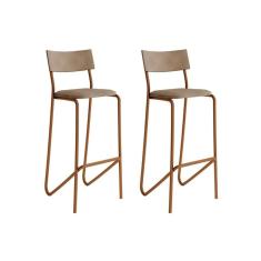 Banqueta Sala de Jantar Atlas 1747 Kit 2 Un Cobre/Linho Areia/Courino Caramelo - Carraro