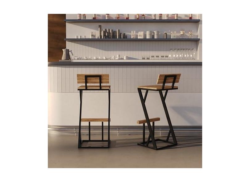 Banqueta Z Alta 95cm Bistrô Madeira Maciça e Aço Carbono Design Industrial e Sustentável - MadeiLed
