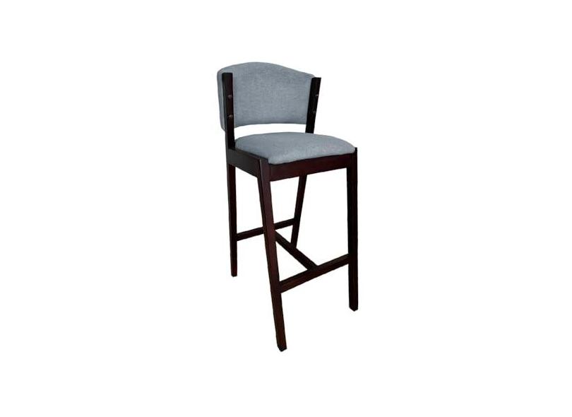 Banquetas Alta De Madeira Maciça Castanho Premium Ana Com Encosto Linho Cinza