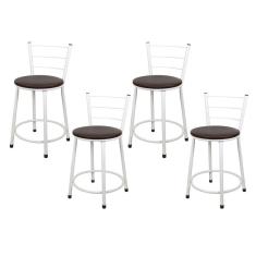 Banquetas Baixa Para Cozinha Branca 4un Assento Marrom