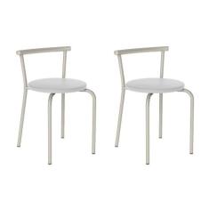 Conjunto 2 Banquetas 105 Tubo Prata Napa Branca Carraro