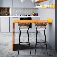 Conjunto 2 Banquetas Altas Estrutura Preta Encosto Junco Cappuccino 70