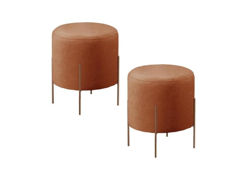 Conjunto - 2 Puff Banqueta Odim Bronze Luxo Castellar Móbile Linho Terracota