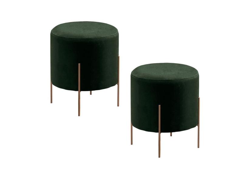 Conjunto - 2 Puff Banqueta Odim Bronze Luxo Castellar Móbile Veludo Verde