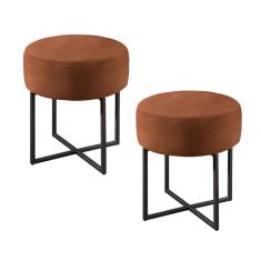 Conjunto - 2 Puffs Banqueta Otávio Base Metálica Preta Luxo - Castella