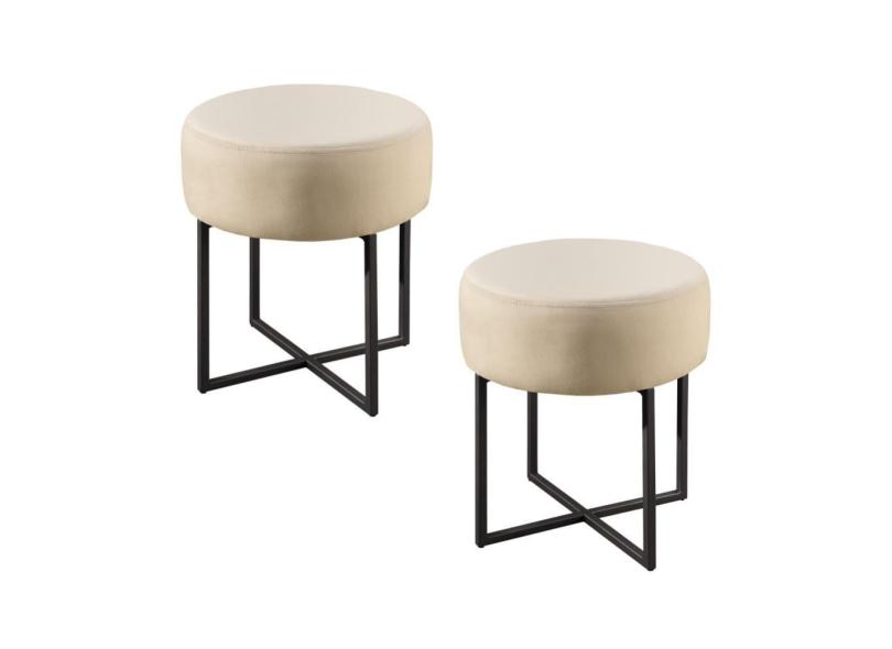 Conjunto - 2 Puffs Banqueta Otávio Base Metálica Preta Luxo Veludo Bege Claro