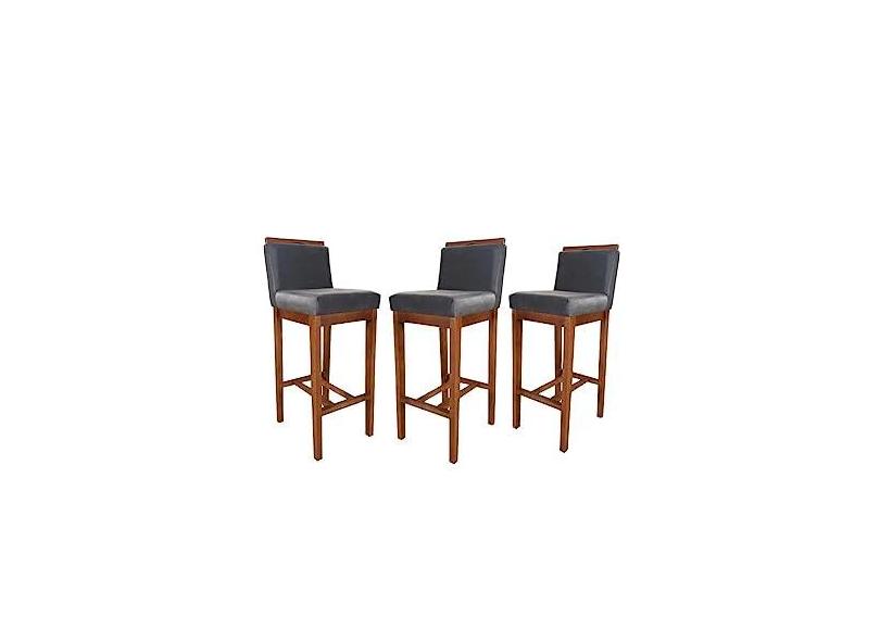 Conjunto 3 Banquetas Alta em Madeira Maciça Libéria Ccs Interiores Pinhao/cinza