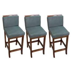 Conjunto 3 Banquetas Alta em Madeira Maciça Londres CCS Interiores