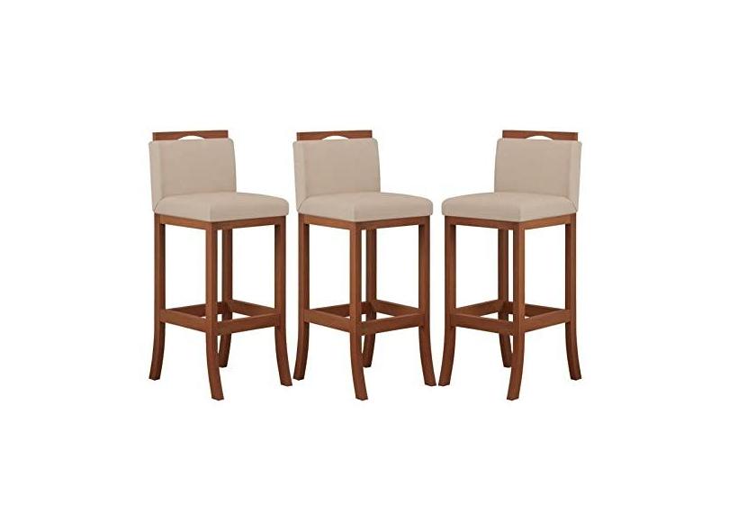 Conjunto 3 Banquetas Altas em Madeira Maciça Londres Ccs Interiores