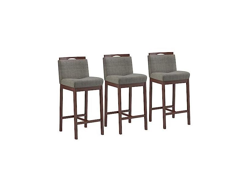 Conjunto 3 Banquetas Madeira Maciça Dani Castanho Tec Linho