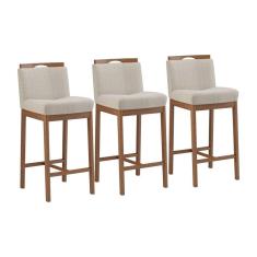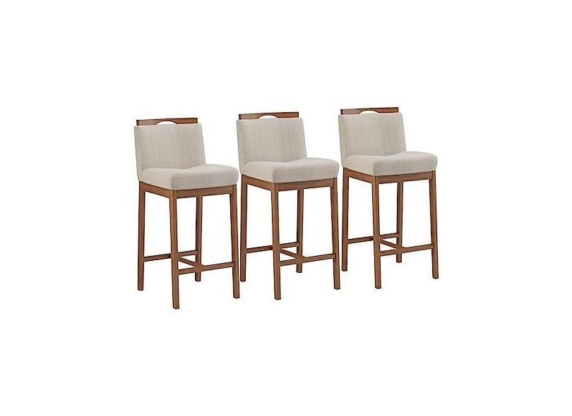 Conjunto 3 Banquetas Madeira Maciça Dani Nogueira Tec Linho
