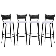 Conjunto 4 Banquetas Altas Estrutura Preta Encosto Junco Preto 70cm It