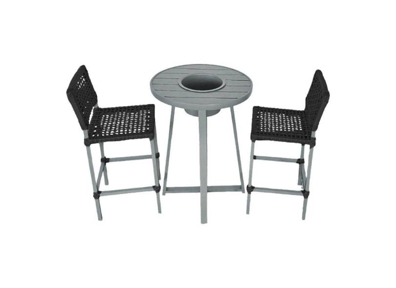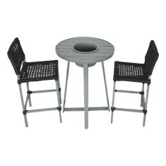 Conjunto Bistrô Champanheira Cinza Tampo Ripado E 2 Banquetas França Corda Náutica Preta Preto