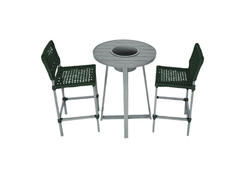 Conjunto Bistrô Champanheira Cinza Tampo Ripado E 2 Banquetas França Corda Náutica Verde Musgo Verde