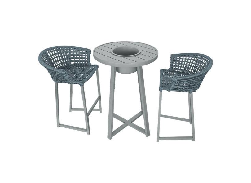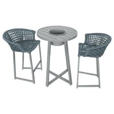 Conjunto Bistrô Champanheira Cinza Tampo Ripado e 2 Banquetas Reis Corda Náutica Cinza