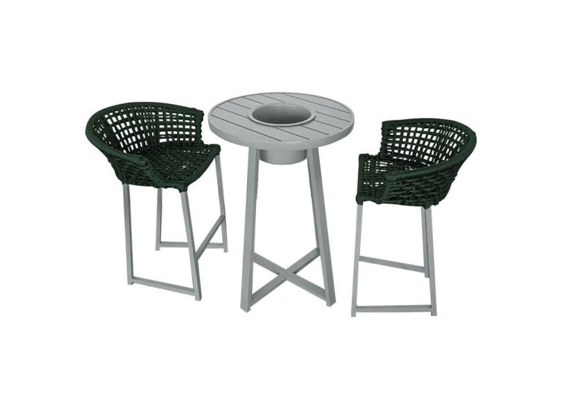 Conjunto Bistrô Champanheira Cinza Tampo Ripado e 2 Banquetas Reis Corda Náutica Verde Musgo