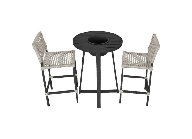 Conjunto Bistrô Champanheira Tampo Ripado E 2 Banquetas França Corda Náutica Areia - Cor: Bege