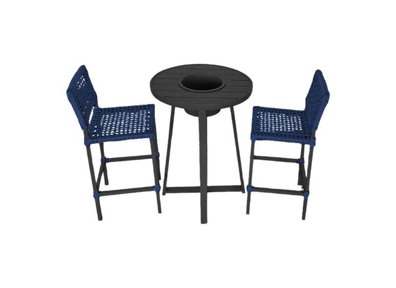 Conjunto Bistrô Champanheira Tampo Ripado e 2 Banquetas França Corda Náutica Azul Marinho