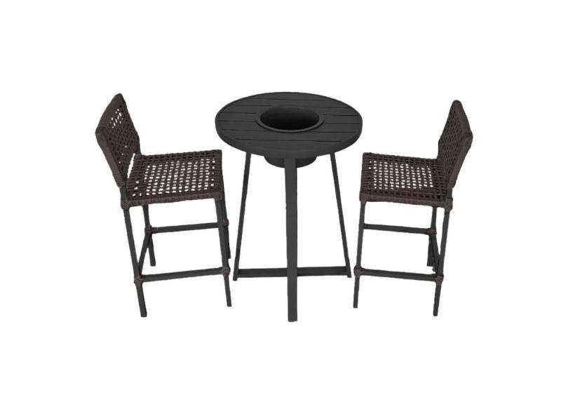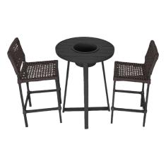Conjunto Bistrô Champanheira Tampo Ripado e 2 Banquetas França Corda Náutica Marrom