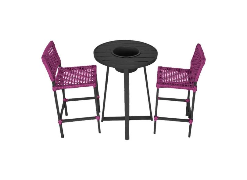 Conjunto Bistrô Champanheira Tampo Ripado e 2 Banquetas França Corda Náutica Rosa