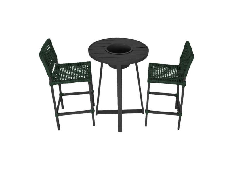 Conjunto Bistrô Champanheira Tampo Ripado E 2 Banquetas França Corda Náutica Verde Musgo Verde