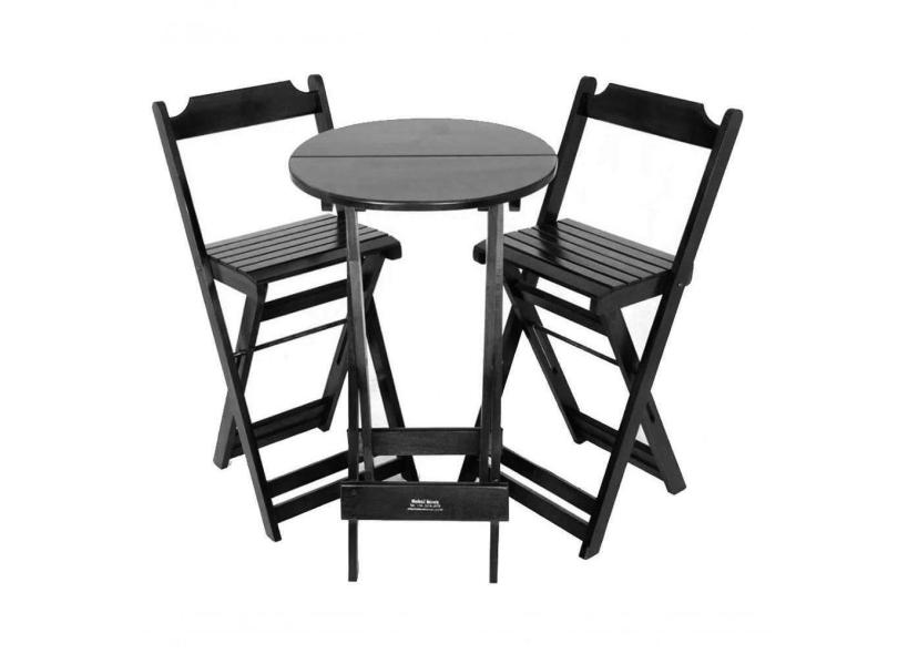 Conjunto Bistrô Dobrável 1 Mesa 2 Cadeirões Madeira Maciça