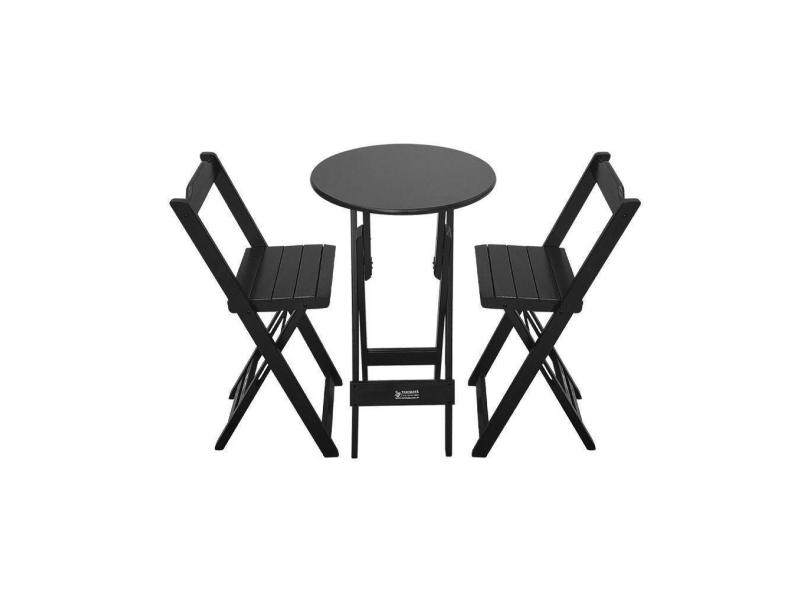 Conjunto Bistrô Mesa Dobrável De Madeira Redonda Com 2 Banquetas Preta Cor: Preto
