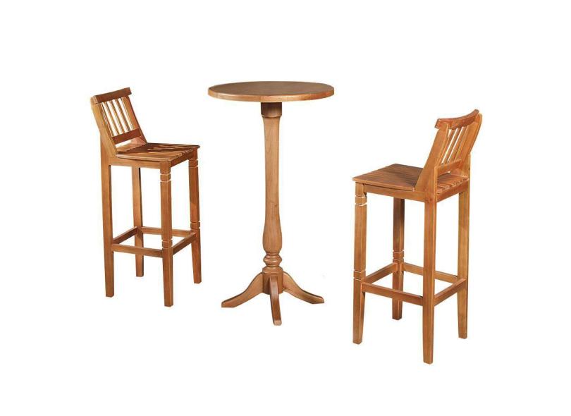 Conjunto Bistrô Mesa Madeira Maciça com 2 Banquetas Confort Ripada Castanha